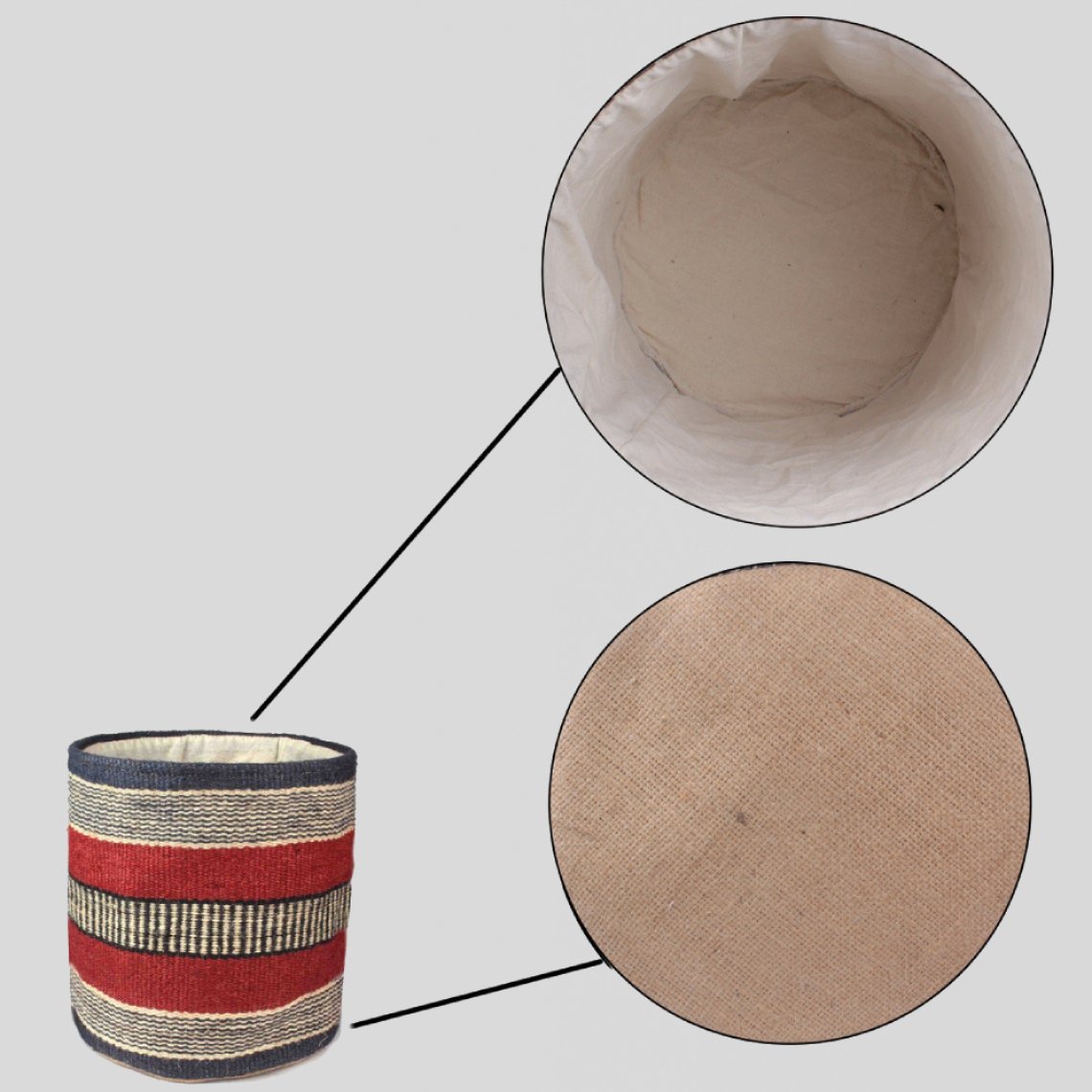 Werten Sie Ihre Pflanzenpräsentation mit diesem stilvollen Jutekorb in Rost und Marineblau auf.