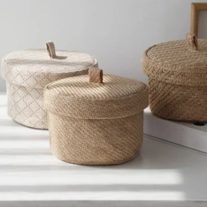Werten Sie Ihr Zuhause auf und bewahren Sie Ihre wichtigsten Dinge ordentlich auf. Dieser Korb aus natürlicher Jute mit Deckel kombiniert Funktionalität und Stil und ist damit perfekt für jeden Raum. Sein minimalistisches Design passt zu verschiedenen Ästhetiken, während das robuste Material für Langlebigkeit sorgt. Er ist ideal für die Aufbewahrung von Kleinigkeiten und verleiht Ihrem Wohnbereich einen Hauch von rustikalem Charme.