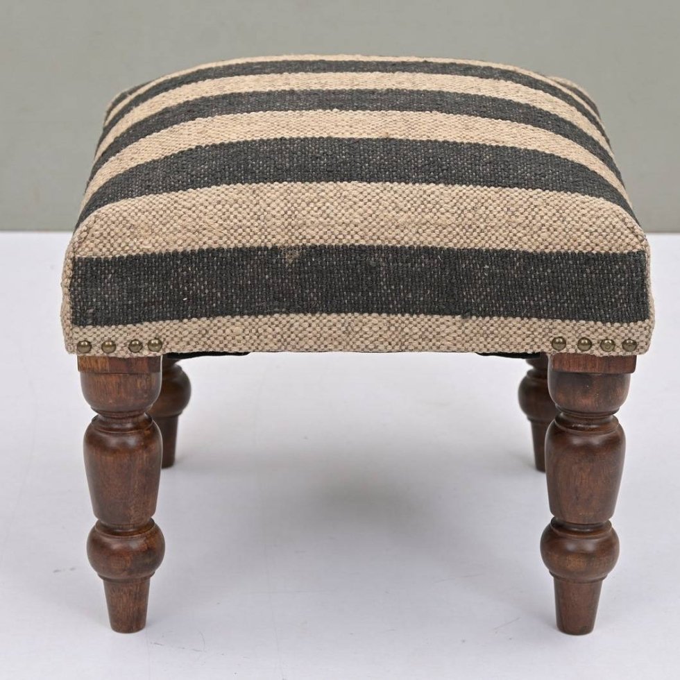 Werten Sie Ihren Raum mit dem einzigartigen Charme unseres Black Striped Jute Footstool Ottoman auf